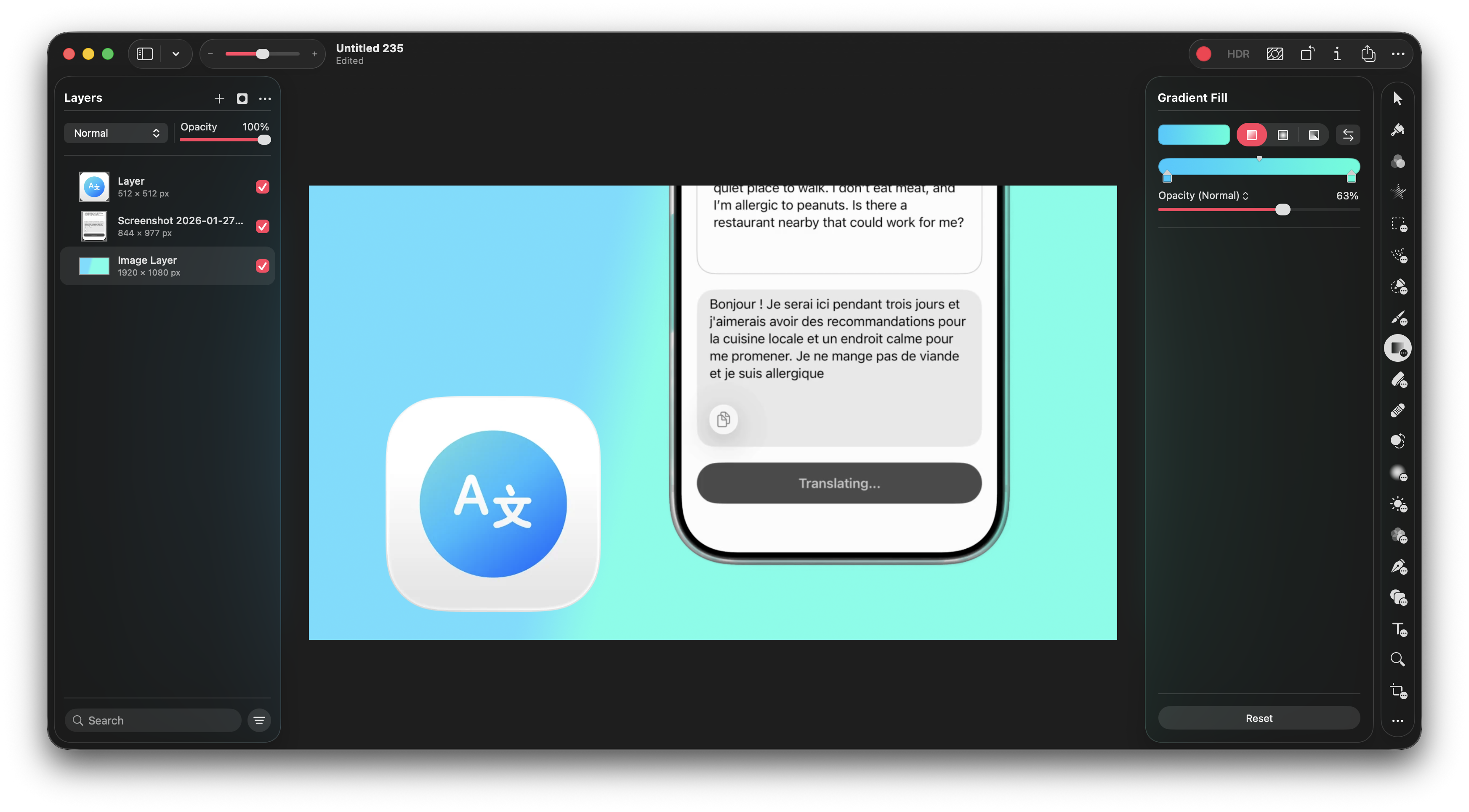 Justement, parlons de Pixelmator Pro, le dernier arrivé chez Apple (la marque l’a racheté fin 2024, Pixelmator était auparavant indépendant). Le logiciel d’édition d’images est tout simplement la star du bundle avec un gros redesign sur Mac et, surtout, une arrivée pour la première fois sur iPad. Je me suis empressé de le tester, après avoir souvent souffert en tentant de monter des simples images pour illustrer des articles sur ma tablette.