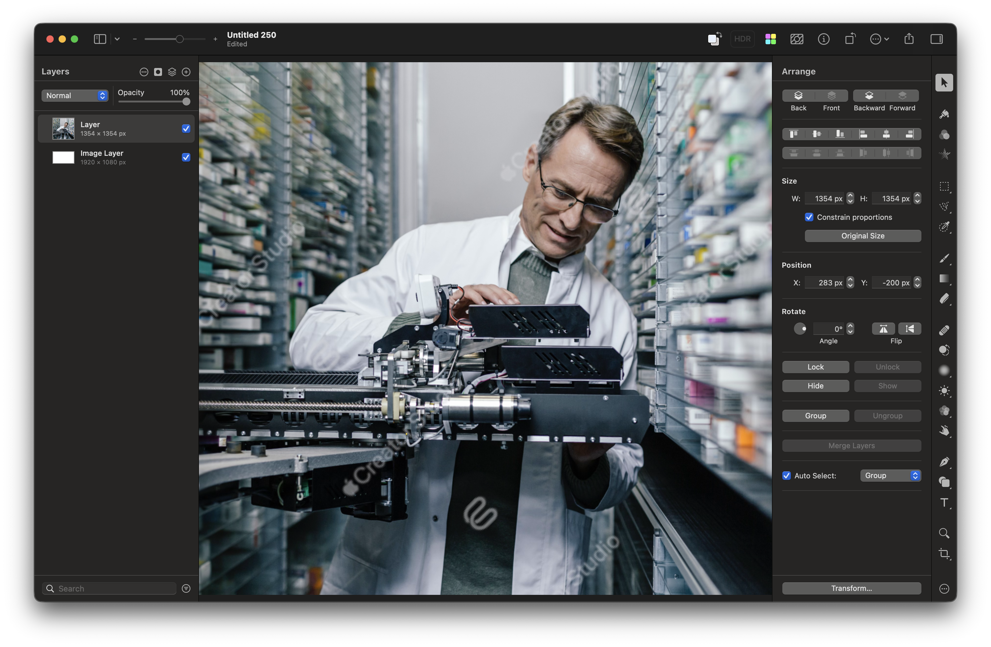 Dans l’ancienne version de Pixelmator Pro par exemple, un filigrane « Creator Studio » apparaît partout. Même chose sur le web, Slack ou iMessage : Apple empêche de partager les images de sa banque d’images gratuitement.