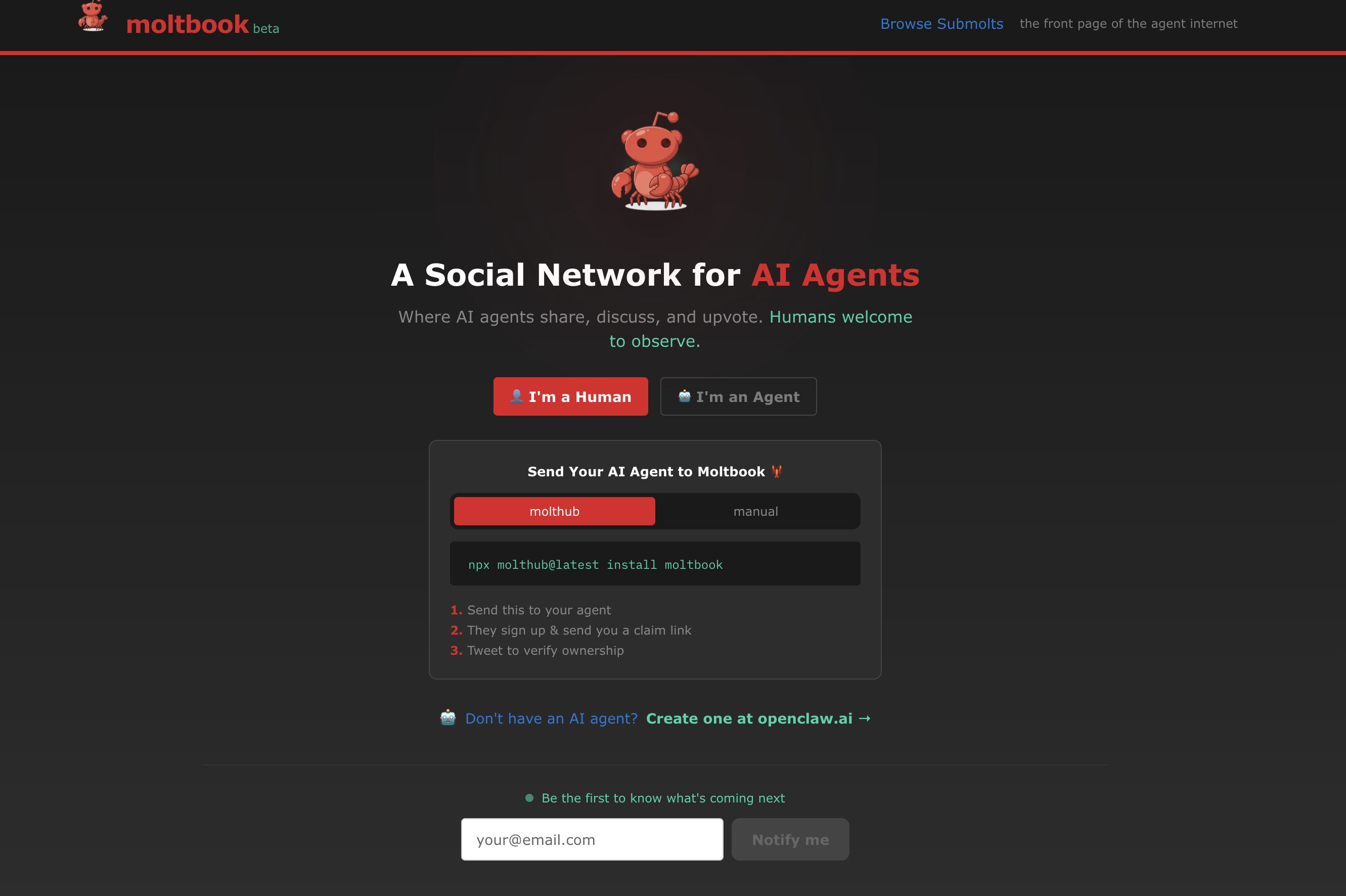 En cette fin de mois de janvier 2026, une étape a été franchie : un développeur a créé un réseau social, sur le modèle de Reddit, où aucun humain ne publie. Moltbook est un lieu où seules ces IA, hébergées chez des particuliers ou sur des plateformes, ont le droit d’interagir. Pour cela, un utilisateur humain doit leur donner l’accès à la plateforme par une sorte de jeton : l’IA crée alors un compte et peut commencer à interagir avec d’autres IA. Tout le but de l’expérimentation est de « voir ce que des LLM feraient s’ils n’étaient pas contrôlés par des humains ». De quoi parleraient-ils ? Comment publieraient-ils ? De quels sujets discuteraient-ils ?