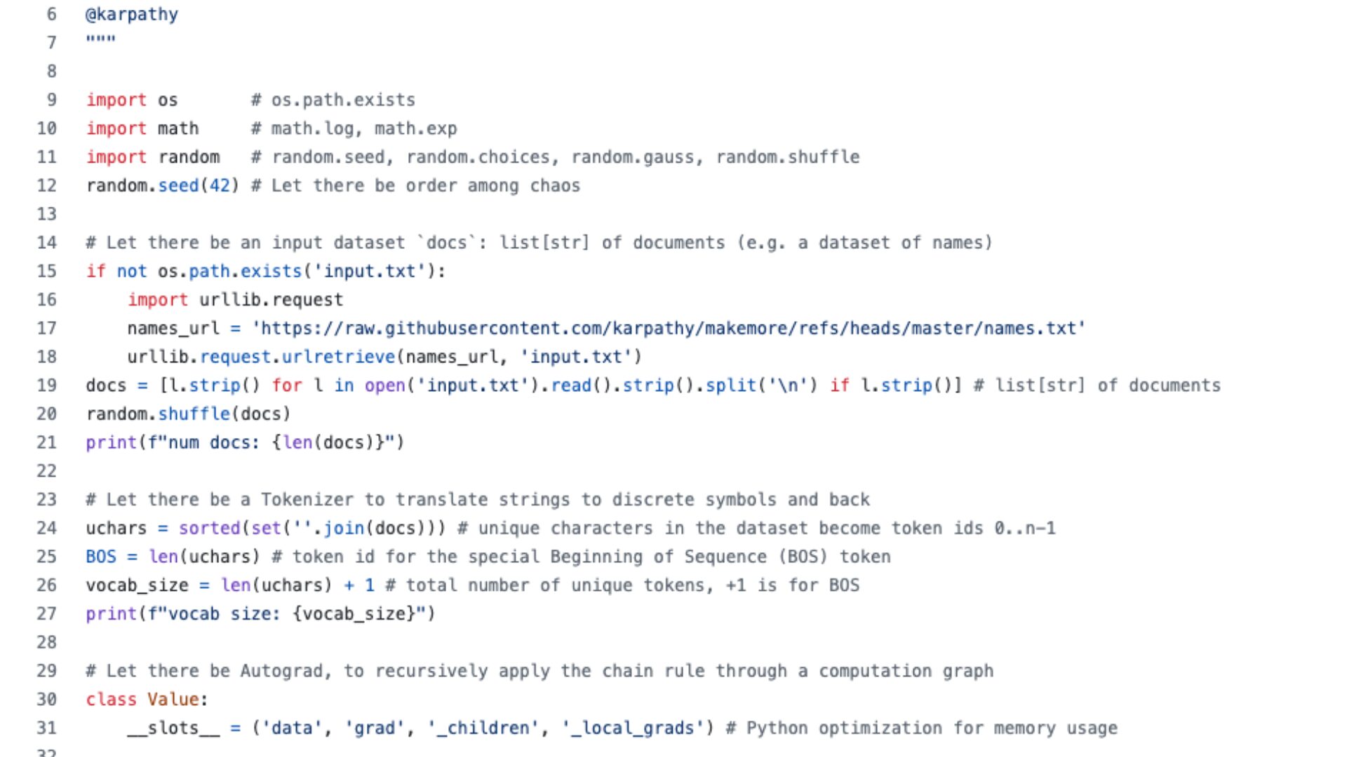 Andrej Karpathy, lui, s’en passe volontairement. Il code manuellement le passage du langage au calcul et expose chaque opération mathématique.