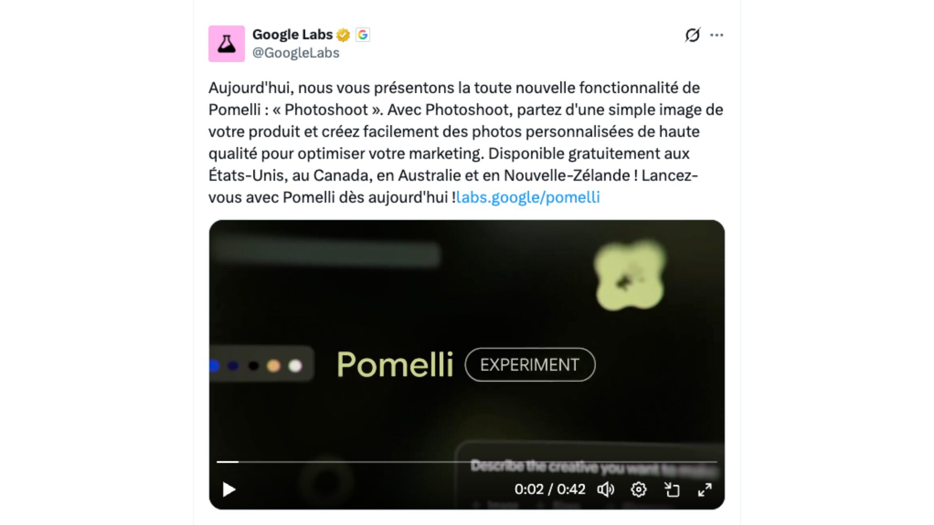 Pour rappel, Pomelli n’est pas officiellement disponible en France pour l’instant. Il est en bêta publique mais limité à quatre pays : États‑Unis, Canada, Australie et Nouvelle‑Zélande, en anglais uniquement.