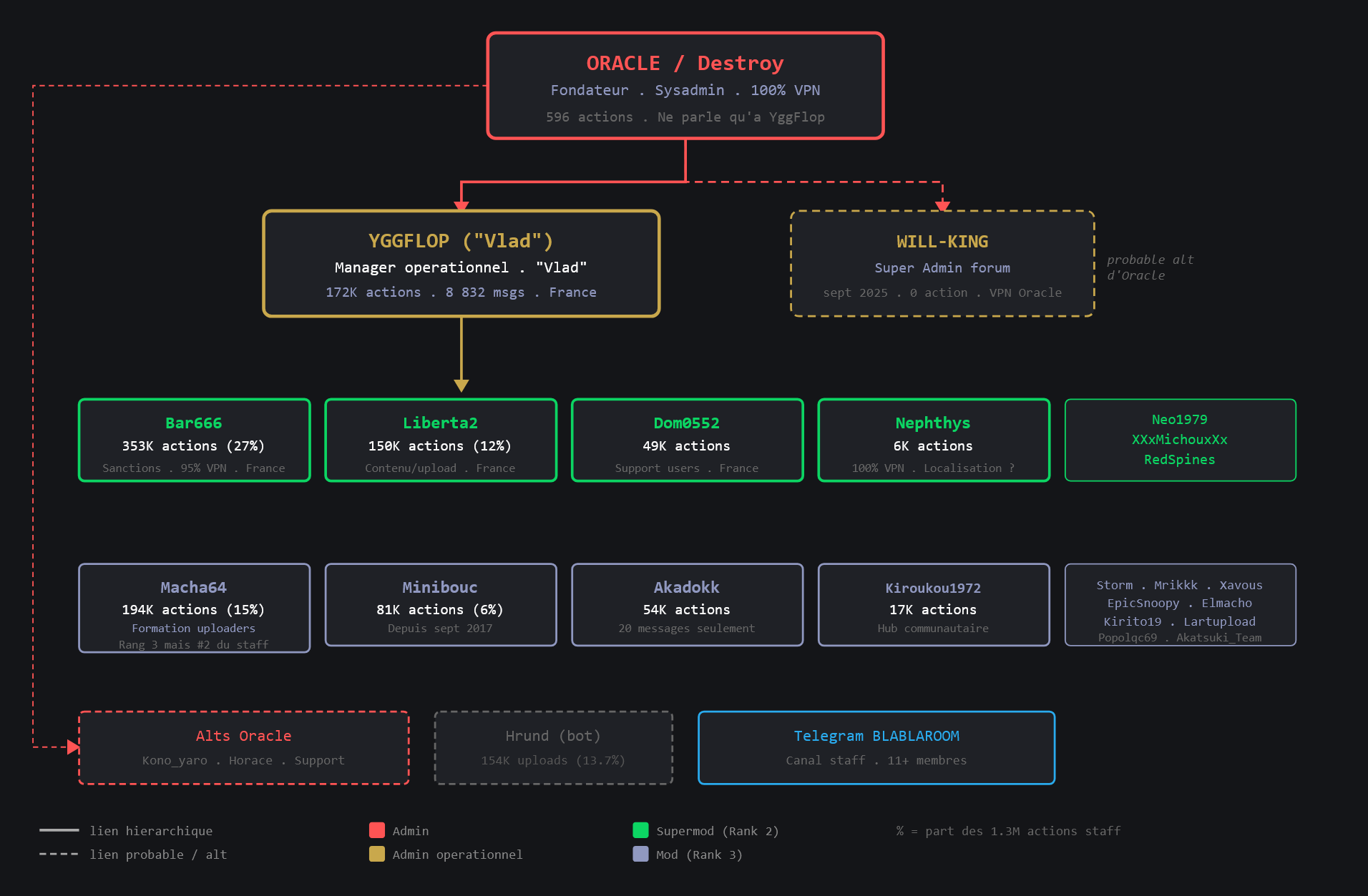 Les administrateurs, désignés sous les pseudonymes « Francisco » et « Vladimir », y sont accusés d’avoir amassé des millions d’euros sur le dos de modérateurs bénévoles. Mais le dossier technique met surtout en lumière des pratiques pénalement graves (en plus des faits de piratage de contenus culturels, qui sont également répréhensibles).