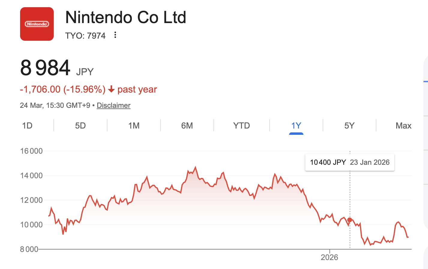 L’action Nintendo, après une croissance forte au moment de l’annonce de la console, ne cesse de diminuer ces derniers mois. Les analystes craignent que Nintendo ne réussisse pas à faire de la Switch 2 une console à la hauteur de la Switch 1 sur le long terme.