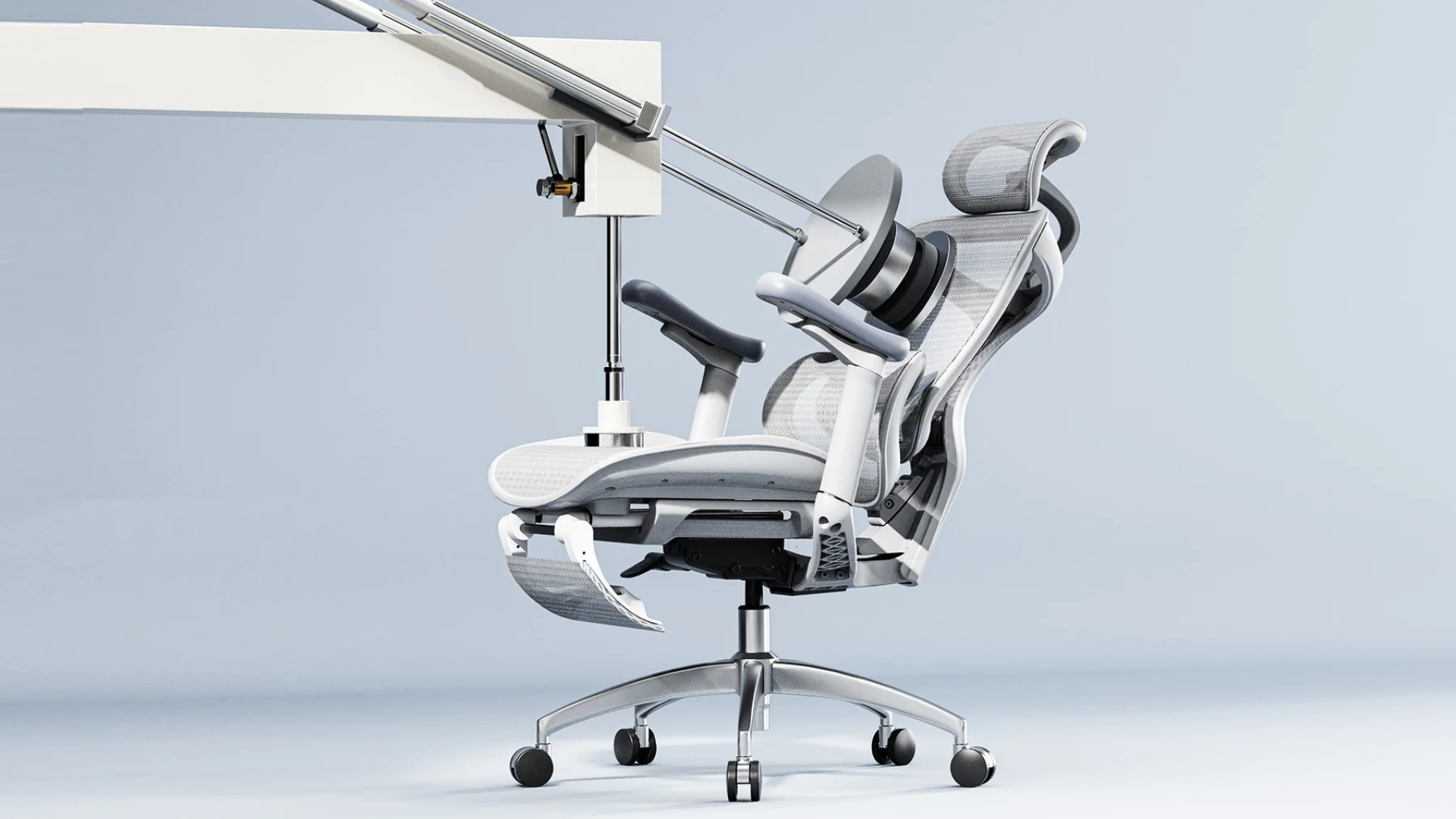 Le principal argument de la C300 est son système de soutien lombaire auto-adaptatif. Ici, pas de molettes : le panneau inférieur est monté sur une suspension autonome qui pivote et suit les mouvements de votre bassin automatiquement. Le dossier, très flexible latéralement, accompagne vos torsions, tandis que la résistance de l’inclinaison s’ajuste automatiquement à votre poids.