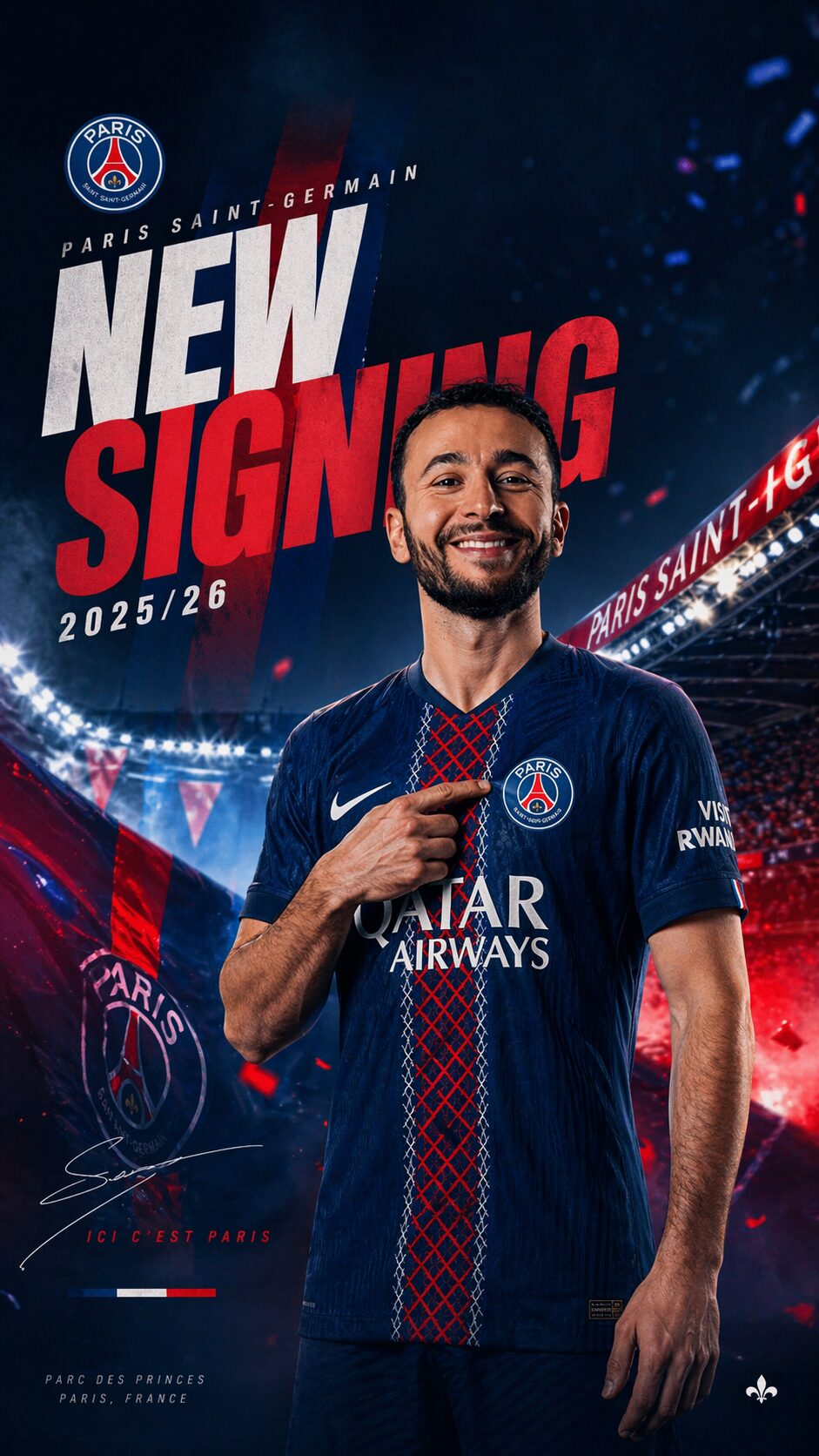 Pour y parvenir, il n’y a pas besoin de réaliser des prompts compliqués avec plein de détails. Une simple demande comme celle-ci suffit : « Crée un poster, un design de Lamine Yamal signant au PSG. Niveau de design avancé, 4:5, fond d’écran pour mobile. »
