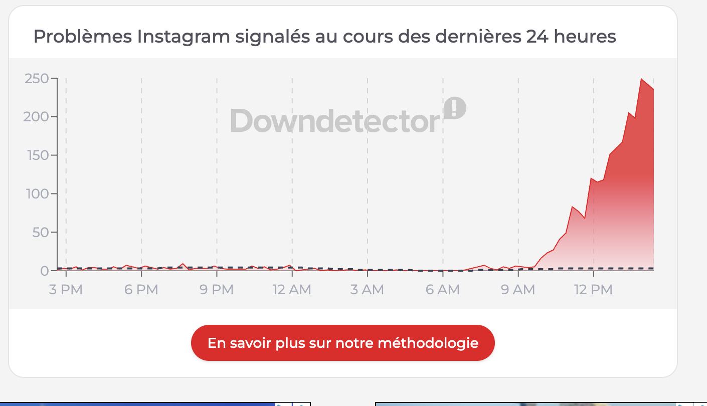 Sur les plateformes comme DownDetector, on observe que le signalement des pannes Instagram ne cesse d’augmenter depuis le 23 avril à 9 heures du matin. Des milliers de personnes signalent une panne du réseau même s’il est possible de l’ouvrir, d’accéder au flux et aux Reels.