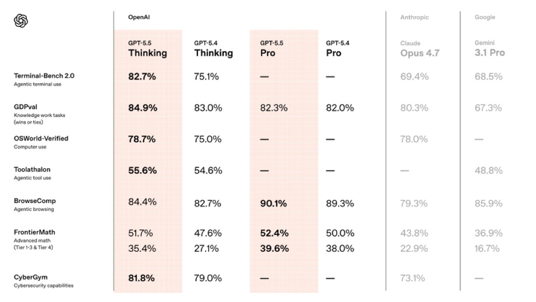 Si Gemini 3.1 Pro garde une légère avance sur certaines logiques pures (ARC-AGI-1), GPT-5.5 écrase la concurrence sur l’utilisation du terminal, la bureautique (GDPval) et la cybersécurité (CyberGym).