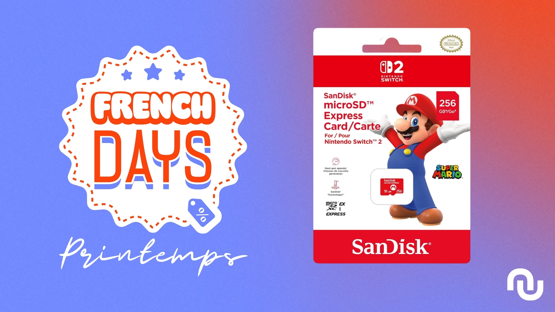 La Switch 2 a beau avoir amélioré sa capacité de stockage, ses 256 Go vont très vite vous rendre fou. Il suffit de regarder l’arrivée de Final Fantasy VII Remake et de ses 90 Go sur la balance pour comprendre l’urgence : le disque dur de la console est saturé en deux temps trois mouvements. Alors autant s’équiper en conséquence pendant les French Days. La carte SanDisk microSD Express de 256 Go spéciale Switch 2 est à 40,30 € avec au lieu de 59,99 € avec le code PRIME15 pour les abonnés Amazon Prime (ou 45,30 € avec le code FRENCHWEEK10). Ce nouveau format Express, taillé spécifiquement pour la nouvelle Nintendo, affiche des débits 6 à 8 fois supérieurs aux vieilles cartes UHS-I.