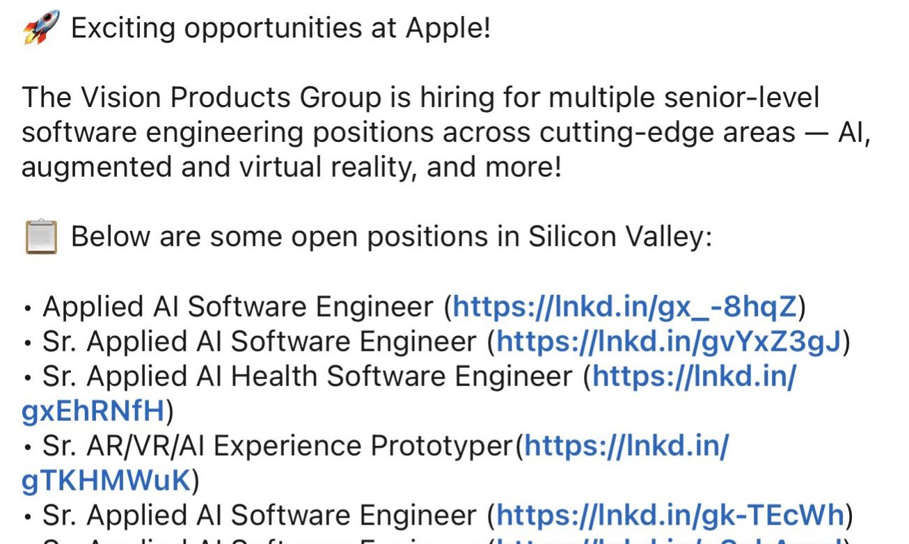 Autre indice : comme le font remarquer plusieurs développeurs engagés dans la réalité mixte, Apple publie régulièrement des offres d’emploi pour la réalité virtuelle. L’équipe « Vision Products Group », que certains annoncent dissoute, continue d’engager des ingénieurs. Un signe supplémentaire que le Vision Pro aura encore une nouvelle chance chez Apple.