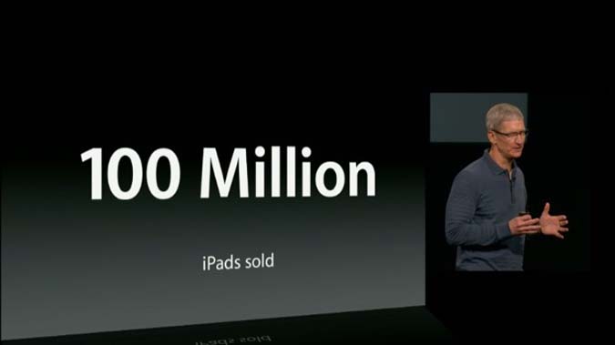 19h40 : Apple évoque l'iPad. En deux ans et demi, trois versions et plus de 100 millions d'exemplaires ont été vendues. Sur scène, Tim Cook constate la domination de l'iPad au niveau du trafic web