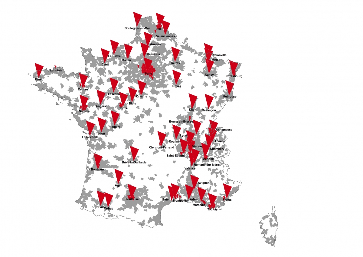 Au second semestre, SFR ambitionne de couvrir 55 zones urbaines. Outre celles citées précédemment, la liste est composée de Paris, Bordeaux, Nantes, Toulon, Grenoble, Rouen, Avignon, Montpellier, Saint-Étienne, Tours, Valenciennes, Rennes, Metz, Nancy, Orléans, Clermont-Ferrand, Mulhouse, Le Havre, Dijon, Angers, Reims, Le Mans, Brest, Pau, Caen, Chambéry, Amiens, Annecy, Annemasse, Besançon, Valence, Troyes, Thionville, Poitiers, La Rochelle, Fréjus, Vienne, Boulogne-sur-Mer, Sète, Roanne, Agen, Tarbes, Brive-la-Gaillarde, Chalon-sur-Saône, Niort, Blois, Beauvais, Bourg-en-Bresse, Arles et Romans-sur-Isère.