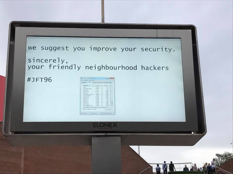 Les passants et automobilistes qui passaient par là ont ainsi pu y voir s’afficher les mots suivants : « Nous vous suggérons d’améliorer votre sécurité. » Un message signé, « Les hackers sympas du quartier. »
