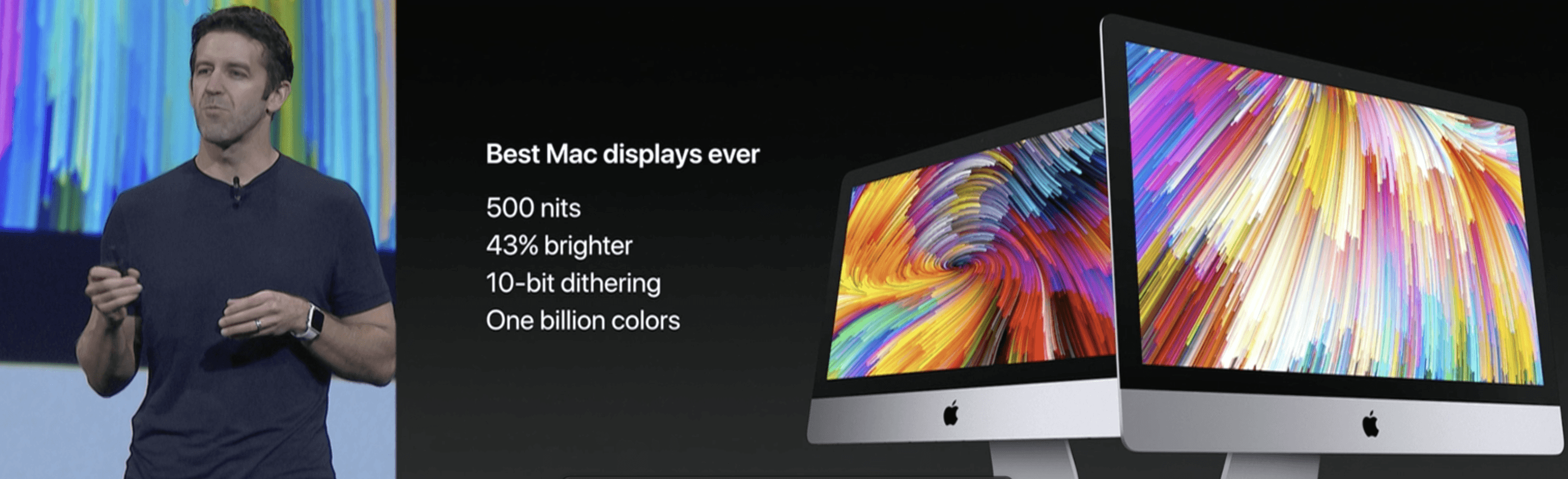 On retrouve, sur toute la gamme, des processeurs Intel sur architecture Kaby Lake, soit les derniers en date côté Intel avant leur annonce du Computex. Les modèles 21,5 pouces pourront avoir jusqu’à 32 Go de RAM et les modèles 27 pouces pourront aller jusqu’à 64 Go. Côté GPU, on retrouve des Iris Plus 640 d’Intel dans les modèles entrée de gamme de 21,5 pouces, quand les modèles 21,5 pouces 4K embarquent des GPU Radeon Pro 555 et 560. Côté 27 pouces, c’est le haut de gamme de AMD qui est disponible : on parle ici des cartes Radeon Pro 570 575 et 580. Nos confrères de TheVerge estiment que la carte la plus puissante est comparable à une GTX 1060 chez Nvidia, soit du milieu de gamme confortable.