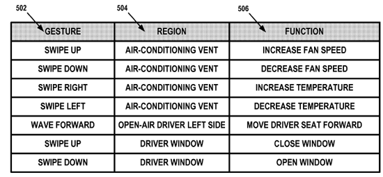 Les passagers pourraient réaliser ces gestes dans différentes zones de l'habitacle, sur le volant, sur le tableau de bord, au niveau des aérations, du fauteuil, de l'accoudoir ou encore du rétroviseur intérieur, mais aussi "sur des surfaces d'un occupant, tel qu'une oreille, un bras, ou une épaule".