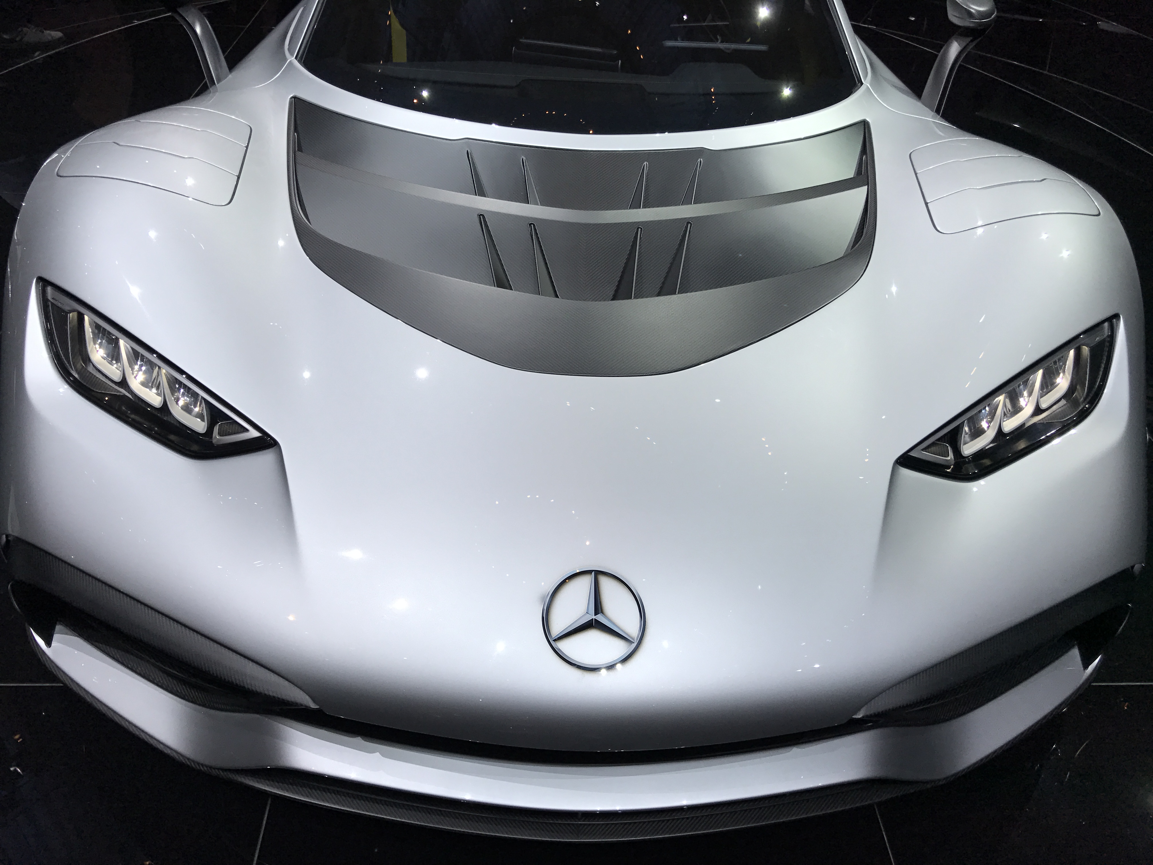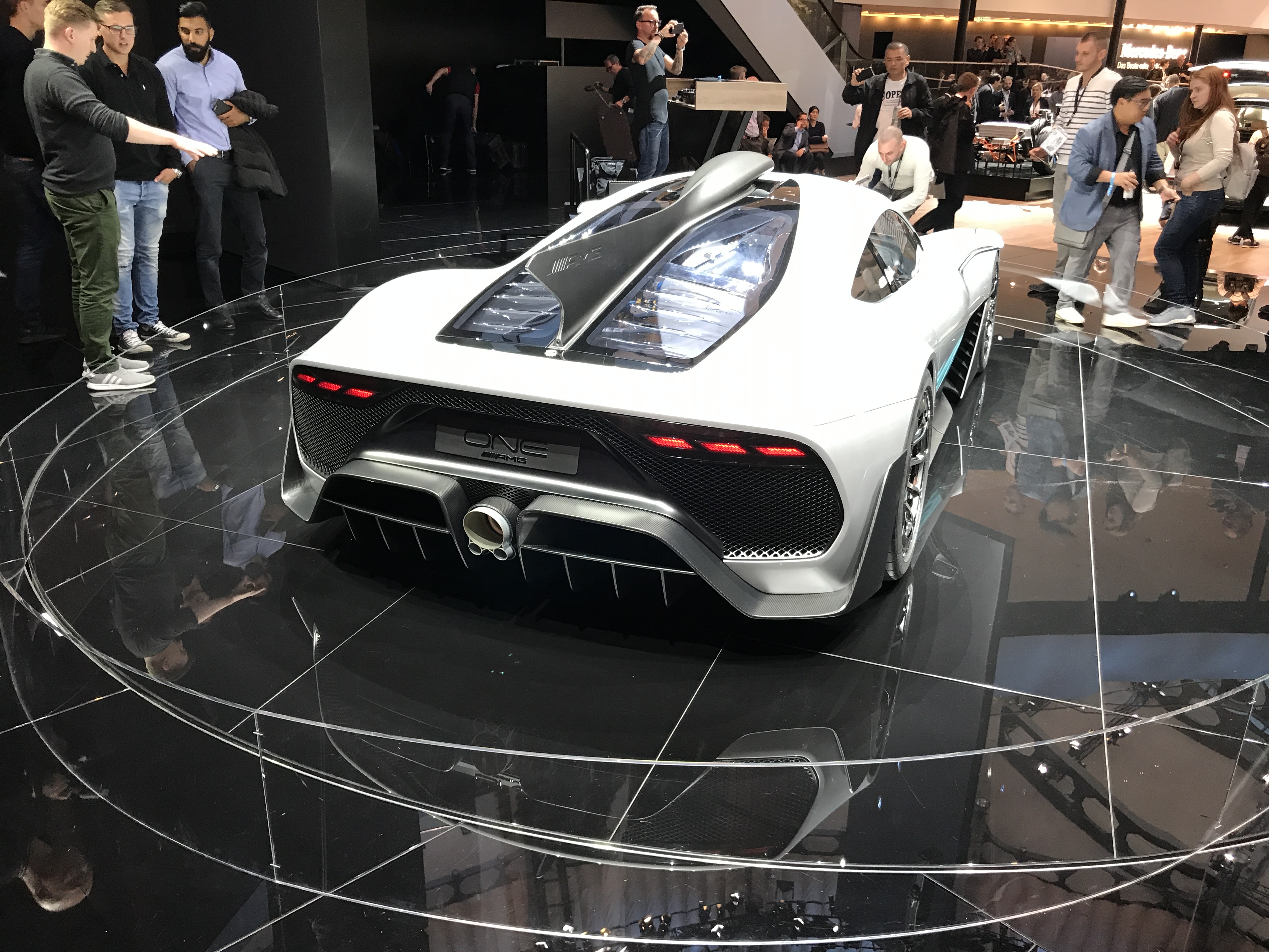 Quand on est fan de Formule 1, l’idée de voir un bolide, certes inabordable d’un point de vue financier, équipé d’un moteur issu de la discipline reine a forcément de quoi attiser la curiosité. Dans les travées du IAA, un peu perdus puisque c’était notre baptême (et que le salon est immense), nous l’avons cherchée un peu partout cette Project ONE. Jusqu’à être alertés par l’ambiance cosy qui se dégageait d’un petit hall qui avait naguère échappé à notre attention : c’était celui de Mercedes. Et c’était donc dans ce paradis luxueux que trônait fièrement la Project ONE. Après l’avoir croisée, on pouvait repartir de Francfort l’esprit tranquille.