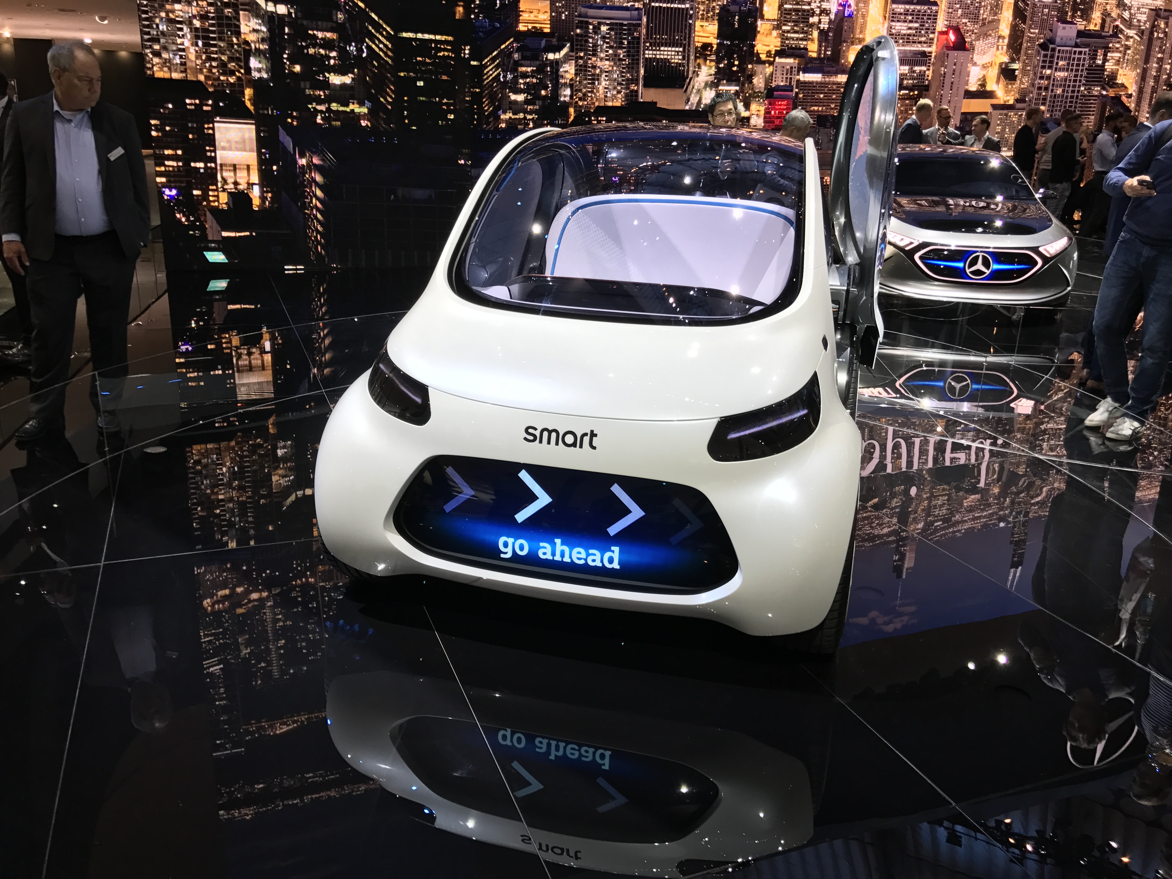 De loin, on la croirait sortie des films Cars avec ses phares pouvant devenir des yeux charmeurs. Elle se prénomme la ForTwo Vision EQ et porte en elle les signes précurseurs des voitures de demain selon Smart, marque spécialisée dans les voitures de rue. Selon les dires du groupe Daimler, elle est le visage de la mobilité urbaine du futur, articulée autour de quatre piliers forts : la connectivité, la conduite autonome, le partage et la motorisation électrique. En prime, cette ForTwo Vision EQ rassemble tout ça dans une robe mignonne comme tout.