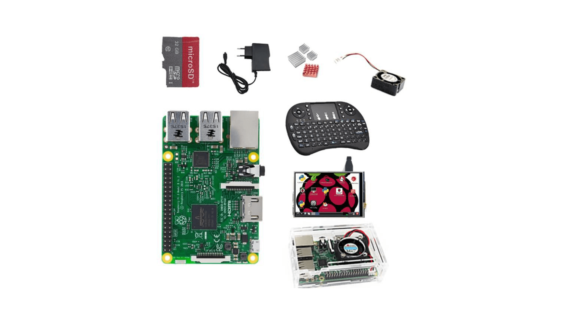 Un autre pack est également disponible en vente flash avec le même modèle de Raspberry Pi. Pour 94,38 euros le pack comprend un clavier sans fil, une carte SD de 32 Go, un afficheur LCD de 3,5 pouces, un ventilateur, un boîtier, un adaptateur et un dissipateur de chaleur.