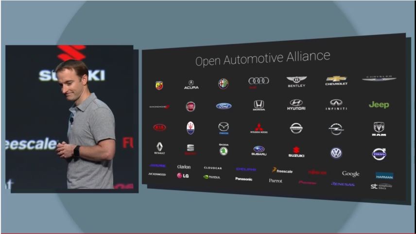 Mais ce partenariat n'est pas exclusif. Plusieurs des entreprises engagées aux côtés d'Apple participent aussi à Android Auto. Citons notamment Audi, Fiat, Renault, Seat, Subaru, Suzuki, Opel, Volkswagen, Jeep, Ford, Nissan ou encore BMW, en plus de quelques autres sociétés. Pour l'occasion, Google a lancé l'Open Automotive Alliance, qui n'est pas sans rappeler l'Open Handset Alliance pour Android.