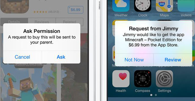 Mais surtout, Apple a mis l'accent sur une fonctionnalité qui arrivera avec iOS 8. La prochaine évolution majeure de son système d'exploitation mobile va en effet intégrer l'option "Partage familial". Celle-ci propose en particulier de contrôler les achats, ce qui fera que les "enfants devront demander la permission avant de faire des emplettes sur l'iTunes Store, l'iBooks Store ou l'App Store".