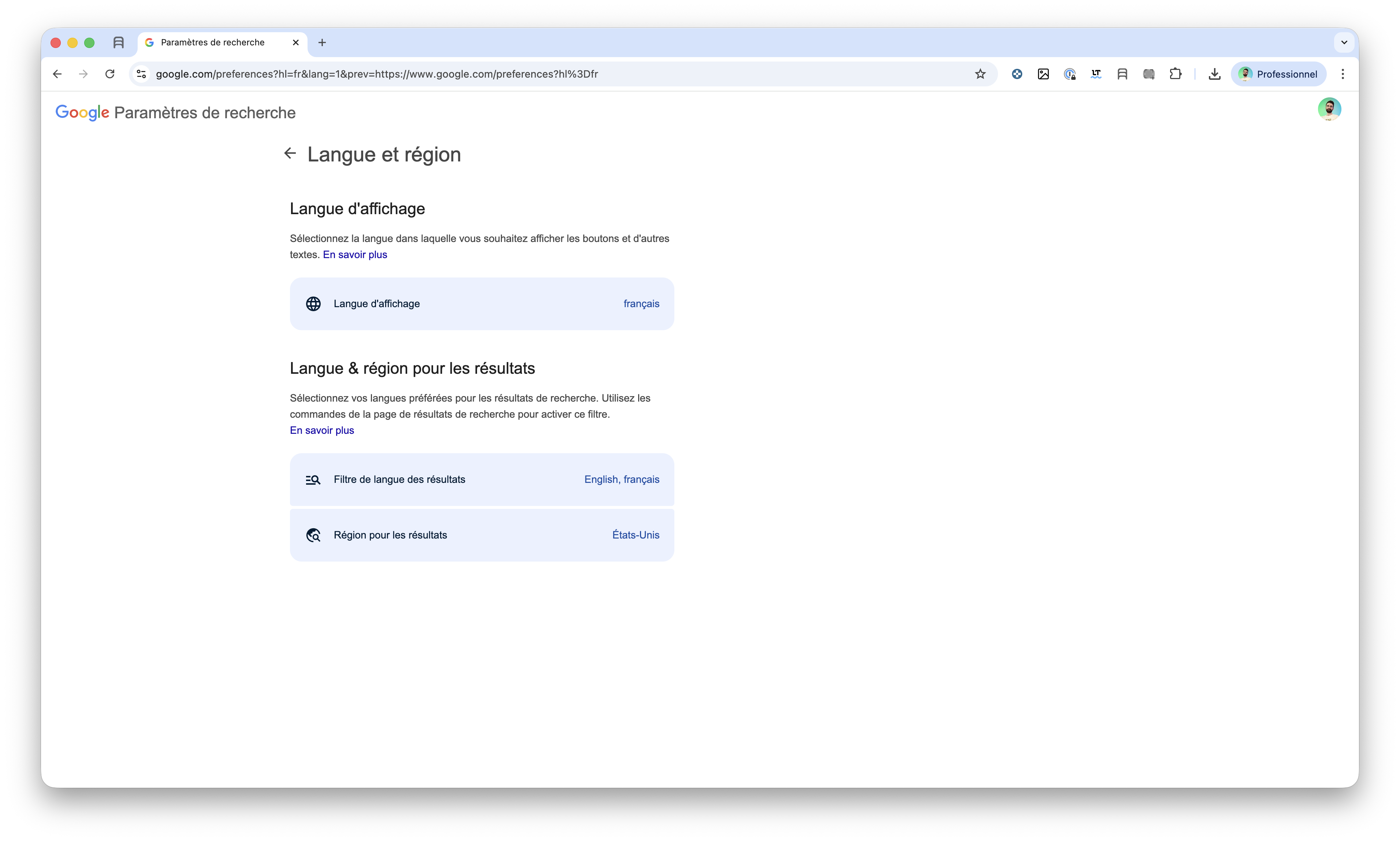 Une option pratique, qui vous permet d’avoir le Google de votre pays où que vous soyez, mais qui peut présenter quelques limites si vous souhaitez parcourir le Google d’une autre langue.