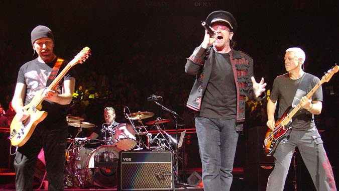 U2 a ainsi fait la promotion du premier baladeur d'Apple — le fameux iPod —, ainsi que celle d'une édition spéciale vendue jusqu'en 2006. Le groupe est aussi apparu dans des spots de télévision où il apparaissait entrain de jouer. U2 et Apple ont également travaillé sur l'iPod Red, une version du baladeur dont une partie des bénéfices est reversée à l'association de lutte contre le SIDA cofondée par Bono.