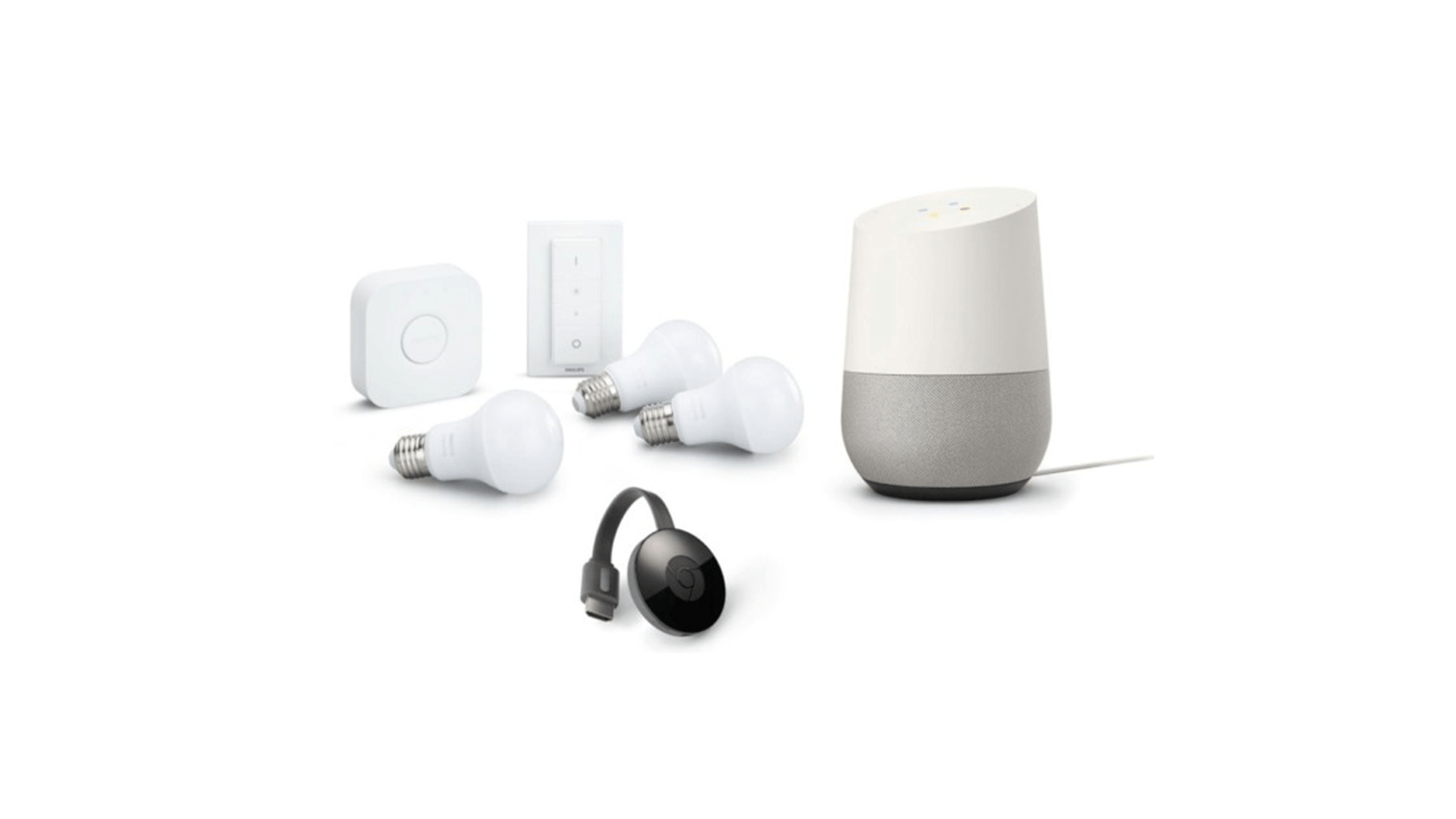 Aujourd’hui, Darty propose en précommande deux packs tout-en-un pour pouvoir connecter sa maison à moindre coût. Le premier pack comprend comprend un Google Home, un Chromecast 2 et un kit de démarrage Philips Hue avec ampoules blanches, pont de connexion et une télécommande pour 229 euros.
