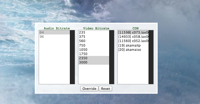 Notez que sous Mac OS, il semble que le menu donne la possibilité de choisir une fourchette de débits, et même de sélectionner un CDN différent comme source des vidéos. Si jamais un réseau de serveurs bénéficie d'une route plus dégagée chez un opérateur, changer de CDN pourrait avoir un effet bénéfique (même si là encore, Netflix est censé le gérer dynamiquement) :