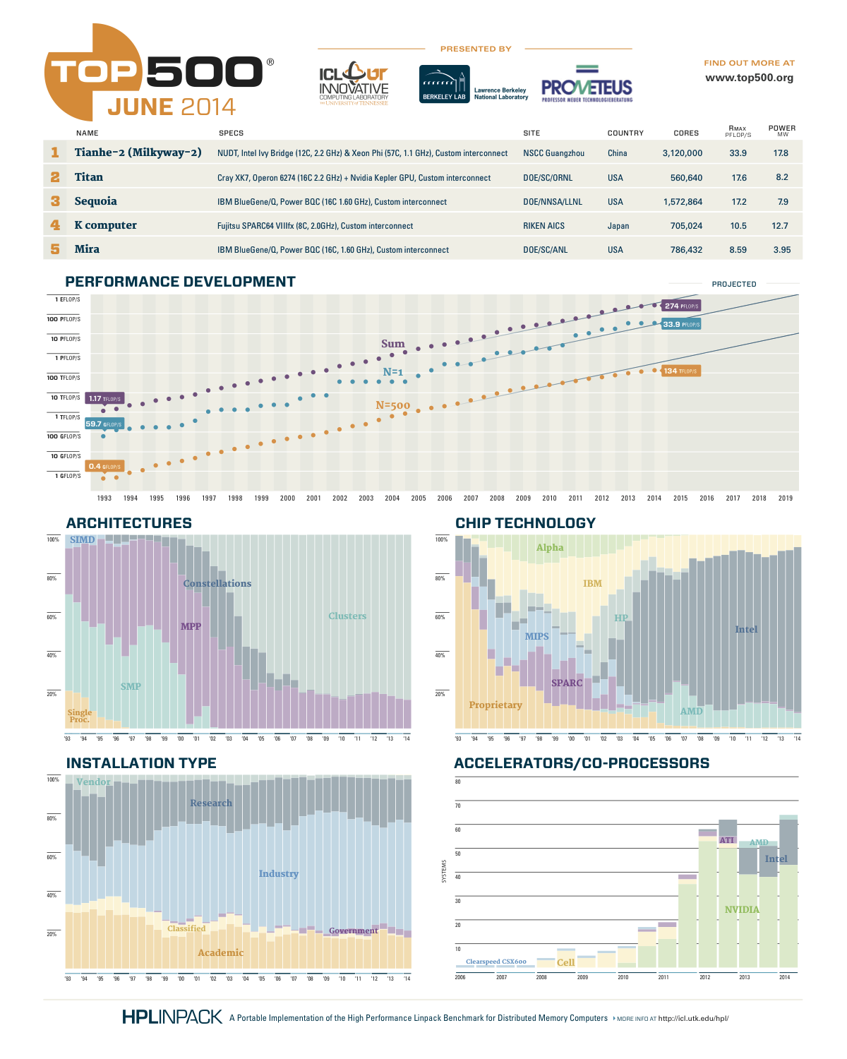 Le Classement TOP500 des plus gros supercalculateurs au monde :