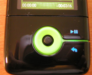 La petitesse du baladeur et ses formes courbes ont tendance à le faire glisser des mains un peu moites. Surtout et c’est le seul véritable gros point négatif de ce test, Creative a choisi un bouton multidirectionnel (sorte de mini-joystick) pour la navigation dans les menus, mais il devient rapidement frustrant : très petit et trop résistant, il faut quasiment utiliser l’ongle pour le faire bouger. Sans doute pour le protéger des mauvais coups, Creative l’a même sous-placer par rapport à la coque, ce qui le rend d’autant moins accessible. Lorsque l’on a goûté à la molette cliquable de l’iPod, il faut avouer que ce type de navigation est difficile à supporter. Deux boutons en façade viennent épauler ce stick. Un bouton classique de « lecture/pause », et un autre d’annulation qui lorsqu’il est maintenu enfoncé, fait apparaître un menu contextuel. Ces boutons-ci sont bien pensés et simples à utiliser, bien qu’un peu trop résistants selon nous.