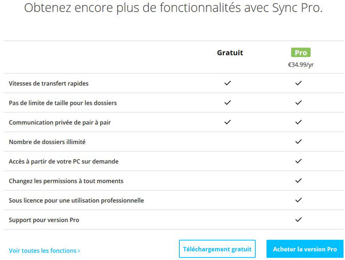 La version payante de Sync est désormais disponible. Comme prévu, la société BitTorrent Inc propose une mouture "pro" de son application de stockage et de synchronisation. Par rapport à la formule classique, celle-ci donne droit à des fonctionnalités supplémentaires afin de justifier le paiement d'une licence annuelle, qui est facturée 34,99 euros par an (soit moins de 3 euros par mois).