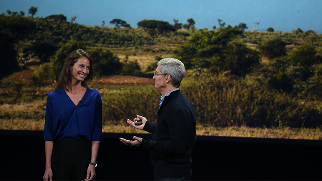 19h03 – Apple diffuse une vidéo promotionnelle sur l'Apple Watch, utilisée par Christy Turlington Burns, qui a couru un semi-marathon avec, en Tanzanie. Elle fait ensuite son apparition sur scène pour expliquer que l'utilisation de la montre a eu un rôle significatif dans sa préparation et la course elle-même.