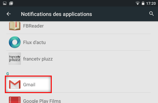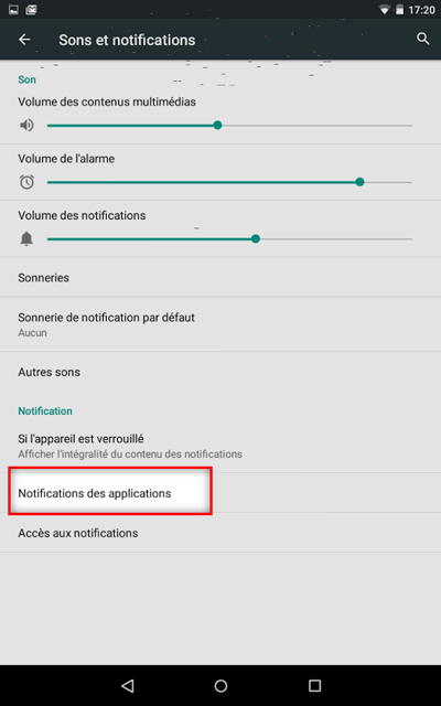 Puis dans le menu "Notifications des applications" :