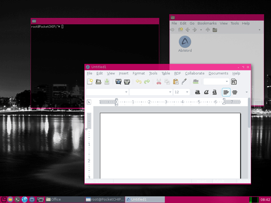 Côté logiciel, CHIP est fourni avec un noyau Linux spécialement optimisé, avec une distribution qui fait tourner LibreOffice, la navigateur Chromium, Scratch (pour apprendre à programmer), des jeux vidéo rétro, et des dizaines d’applications pré-installées :