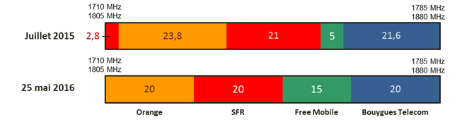 Concrètement, la bande 1800 MHz sera répartie entre les opérateurs de la façon suivante :