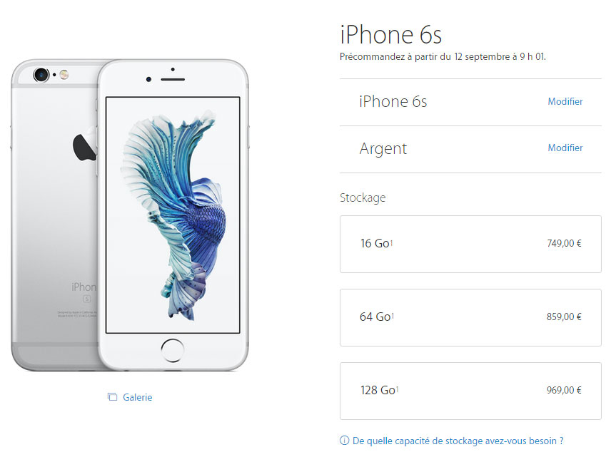 Au moment du choix d'un modèle d'iPhone 6S, qui va de 16 Go à 128 Go, Apple affiche un lien pour savoir "de quelle capacité de stockage" vous avez besoin. Mais ses explications sont visiblement écrites par Captain Obvious. "Plus vous avez de gigaoctets, plus vous pouvez stocker de contenus sur votre iPhone — apps, jeux, photos, vidéos HD, musique et films. Par exemple, si vous disposez d’une discothèque ou d’une photothèque importante ou de beaucoup d’apps, il est recommandé de choisir un iPhone doté d’une plus grande capacité de stockage". Merci bien. Aucun chiffre n'est donné pour illustrer la capacité en pratique avec des exemples concrets.