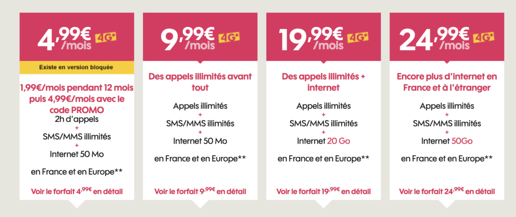 - 8,99 € par mois pendant un an puis passage au forfait Free à 19,99 €
