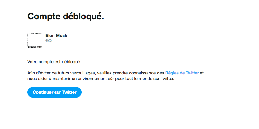 Pour déverrouiller son compte Twitter, il n’y a qu’une méthode : envoyer son numéro de téléphone. Une fois envoyé, le compte est débloqué. Mais en attendant que le compte soit déverrouillé, ce compte « suspendu » n’est plus comptabilisé dans le nombre d’abonnés des comptes qu’ils suivaient. C’est une nouveauté annoncée le 11 juillet 2018. par Vijaya Gadde, conseillère juridique de Twitter, dans une publication de blog.