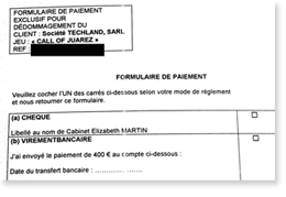 Ceux qui acceptent de payer (et qui le refuserait ?) trouveront en deuxième annexe un formulaire de paiement, par chèque ou par virement.