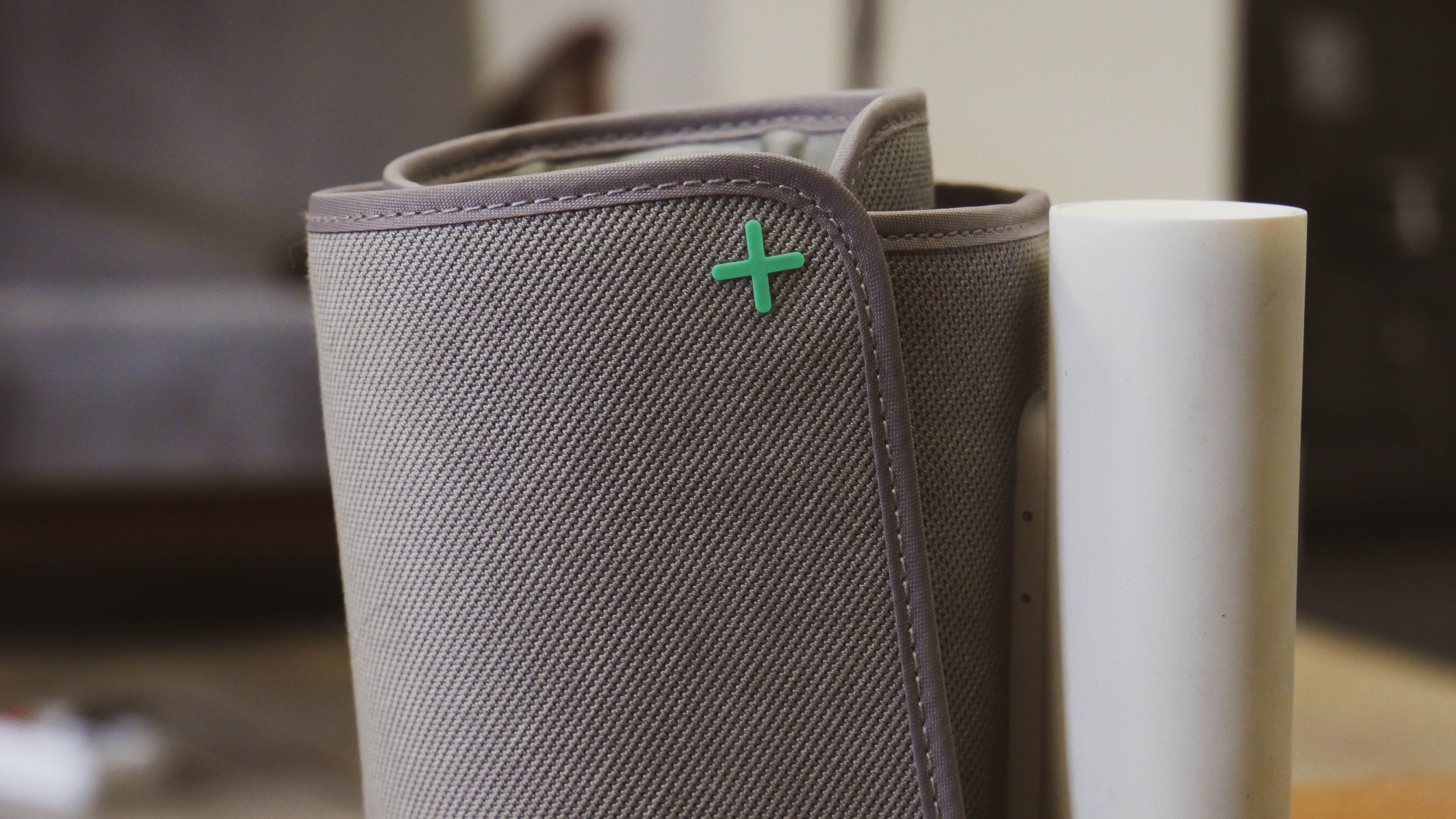 D’emblée, on peut reconnaître que Withings a bien fait les choses. Le BPM Core, conçu avec des cardiologues et certifié dispositif médical, est un objet qui ne laisse pas beaucoup de place à l’erreur d’utilisation — ce qui est la clef d’un bon relevé et l’une des critiques fréquentes adressée à l’auto-diagnostic. Comme les tensiomètres que l’on utilise chez le médecin, il s’enroule autour du bras gauche dans un sens unique (pointe en métal vers le bas). Le design sert ici une fonction : si vous mettez la pointe vers le haut, vous ne pouvez ni appuyer sur le bouton pour lancer la mesure, ni procéder confortablement à l’ECG.