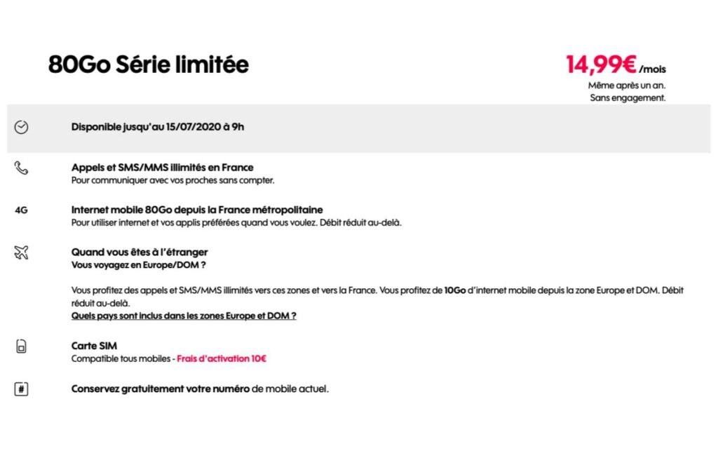 Vous avez jusqu’au 15 juillet 2020, soit deux semaines à partir d’aujourd’hui, pour profiter de cet excellent forfait mobile qui profite des infrastructures d’Orange à moindre prix.