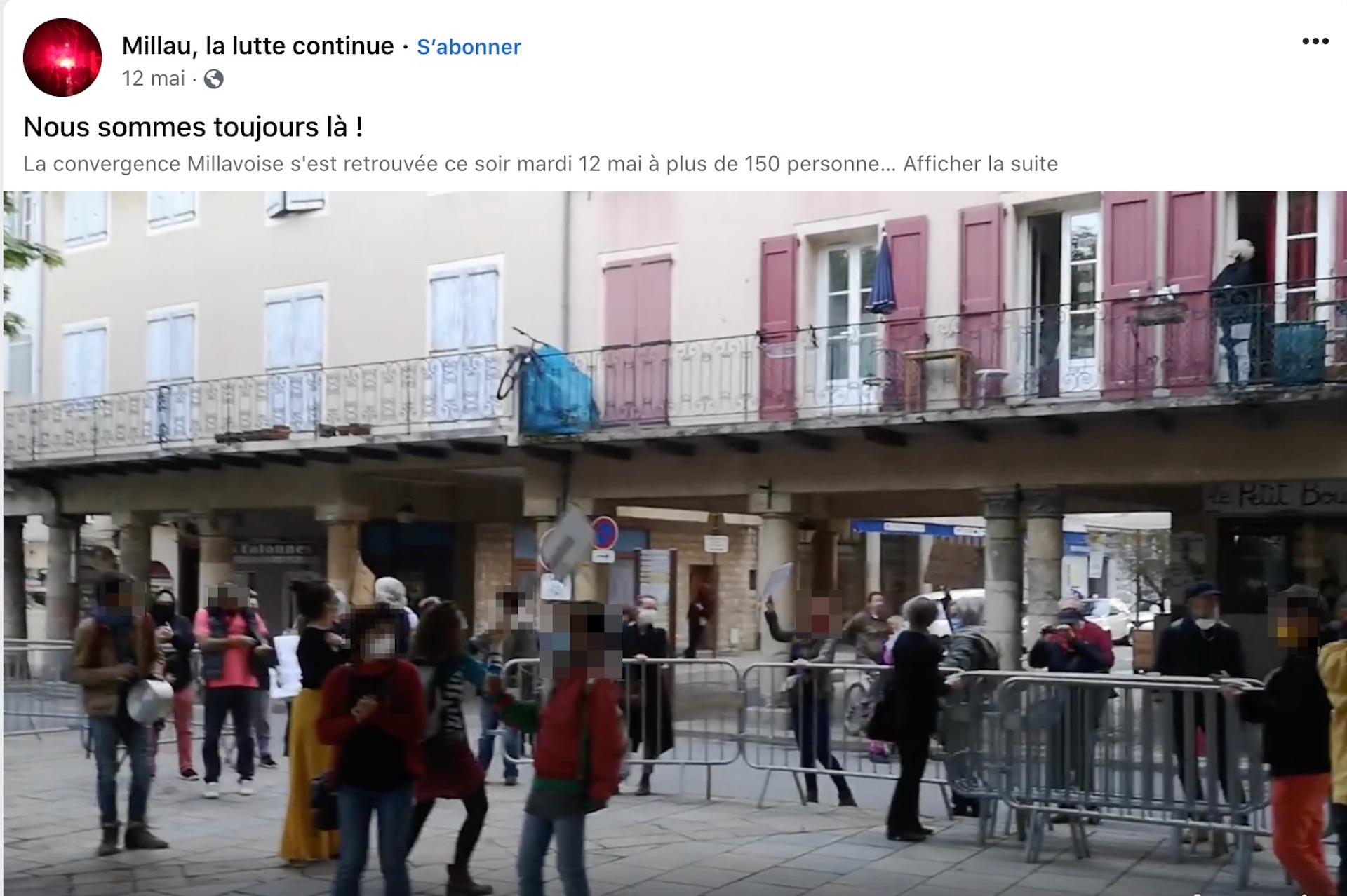 11 mai : on déconfine. Le lendemain, dans de nombreuses villes du pays, on manifeste. A Millau (Aveyron), plus d’une centaine de personnes se réunissent dans un concert de casseroles pour protester contre la gestion gouvernementale de la crise du Covid et soutenir les personnels de santé. « On avait presque tous des masques ou des foulards et on respectait les distances de sécurité », raconte Jérôme, participant à ce rassemblement non déclaré. De loin un policier et deux agents des renseignements territoriaux les observent. Tout se déroule calmement, sans interpellation, sans contrôle d’identité.
