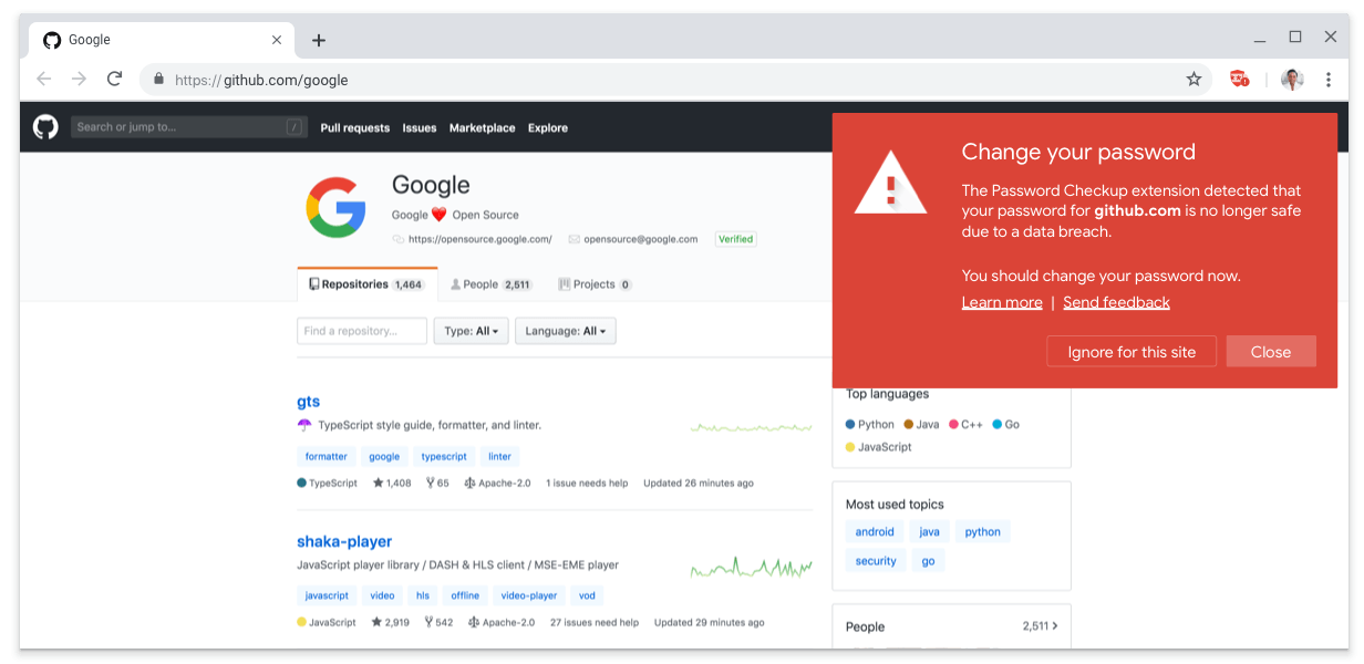 Il est à noter qu’une alerte émise par Google dans le cadre du Password Checkup n’est pas forcément le signe que votre compte est effectivement piraté, mais que les codes d’accès y menant sont dans la nature et qu’un tiers malveillant pourrait finir par les prendre et les exploiter. Dans tous les cas de figure, si une notification apparaît, il n’y a aucune question à se poser : le mot de passe doit être changé.