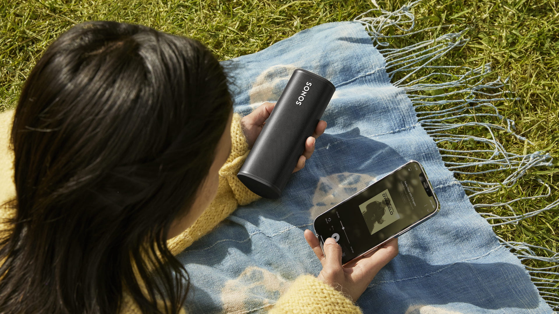 La Roam peut lire de la musique sur Wi-Fi ou Bluetooth, sachant qu’elle devrait passer automatiquement de l’un à l’autre en fonction des besoins et des conditions (priorité au Wi-Fi). Vous pourrez par exemple commencer à lire votre chanson favorite dans votre salon grâce au Wi-Fi, puis emmener l’enceinte avec vous pour un petit barbecue dans le jardin, où le Bluetooth prendra le relai sans aucune coupure (à condition que votre smartphone soit à portée).