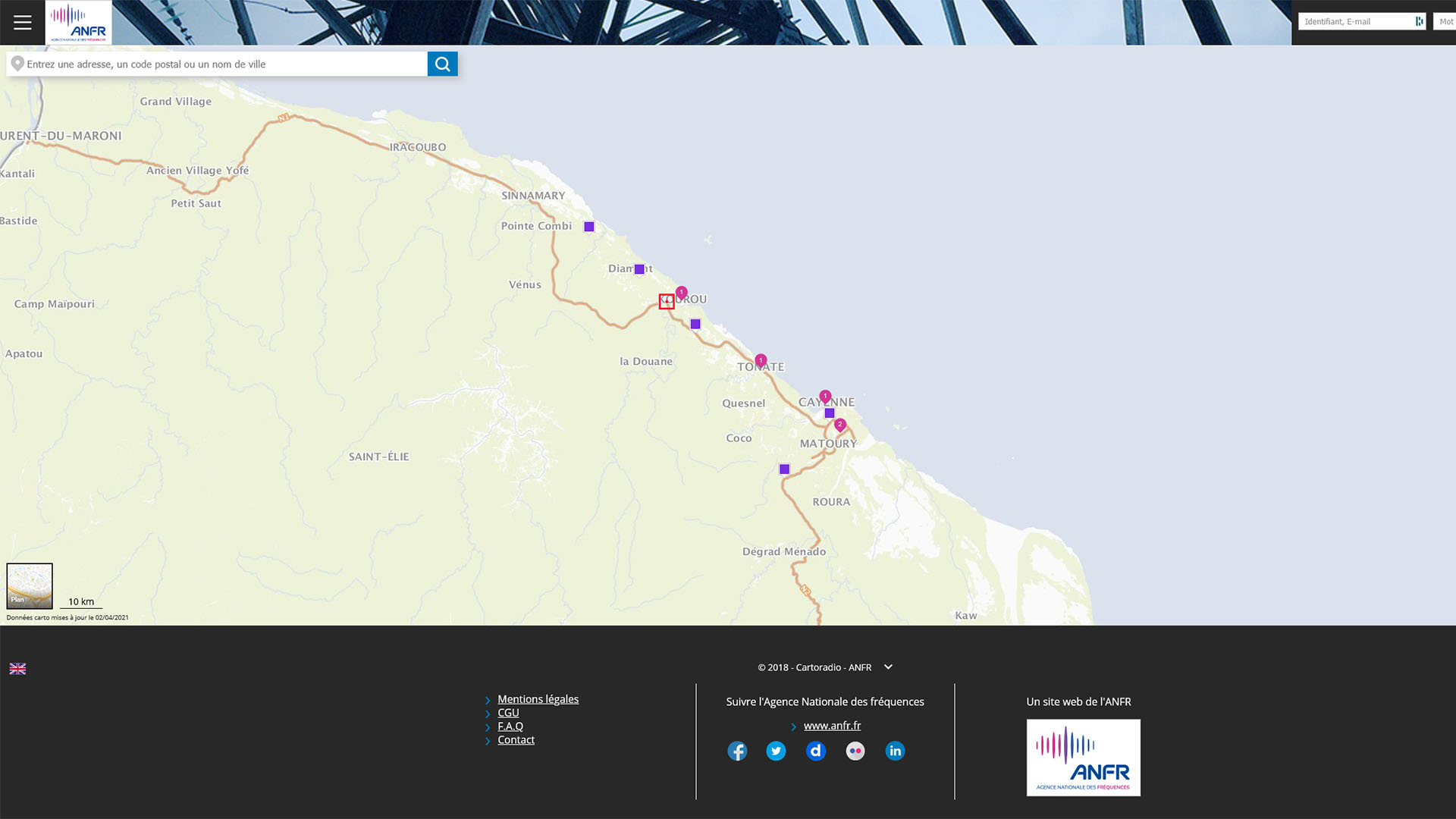 Il est possible de situer l’emplacement de ces cinq premières structures compatibles 5G en Guyane : il suffit pour cela de se rendre sur le site Cartoradio, qui est opéré par l’ANFR. On note qu’elles se trouvent à Cayenne et à Matoury, ainsi que sur la route menant jusqu’à Kourou, le long de la côte. Rien d’étonnant : c’est là que l’essentiel de la population est concentré et qu’on trouve le centre spatial guyanais.