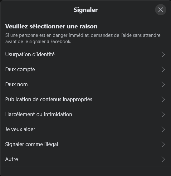 L’usurpation d’identité, c’est-à-dire le fait de se faire passer pour quelqu’un d’autre (en l’occurrence, vous), est monnaie courante sur le web. Facebook n’y échappe pas. Heureusement, il y a des parades. Il suffit de se rendre sur le profil malveillant et de sélectionner les trois petits points sous la photo de couverture pour signaler un profil. Un formulaire disponible à cette adresse permet de faire la même chose si l’on n’est pas inscrit sur le site communautaire.