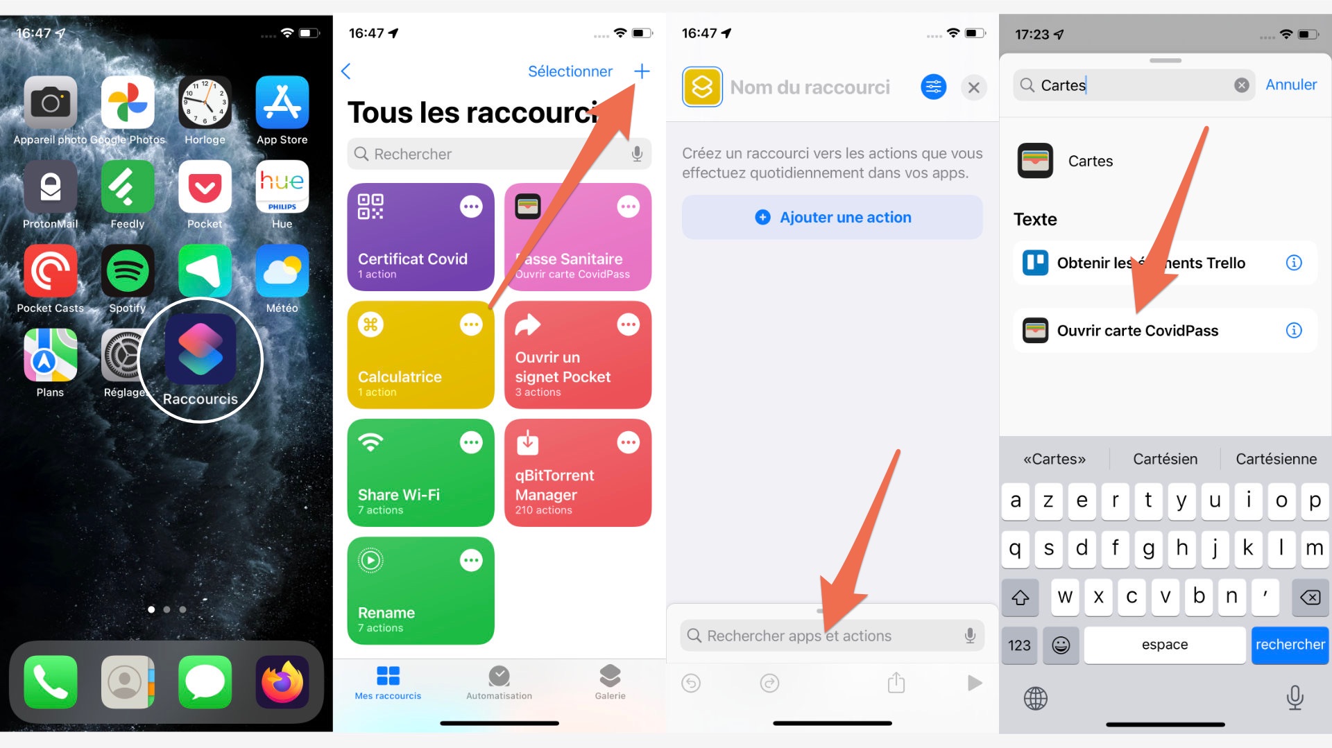 Pour avoir un accès rapide à son certificat ou son QR Code, il est possible de l’importer dans TousAntiCovid. Mais si vous êtes sur iPhone, l’application Raccourcis offre un moyen encore plus rapide d’accéder à son pass sanitaire (sur tous les iPhone à partir d’iOS 12).