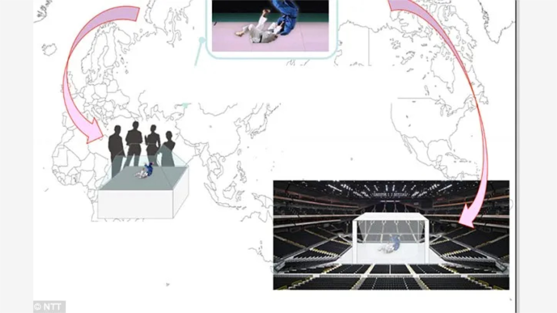 Côté captation, les combats n’ont même pas besoin d’être effectués devant un fond vert. Les caméras de NTT sont capables d’extraire un squelette 3D des athlètes en temps réel, « quel que soit le fond ». En multipliant les caméras, la modélisation 3D est plus précise et permet d’avoir plusieurs angles de vue sur l’action. Pléthore de micros sont placés dans la salle pour reproduire aussi l’ambiance acoustique de l’évènement.