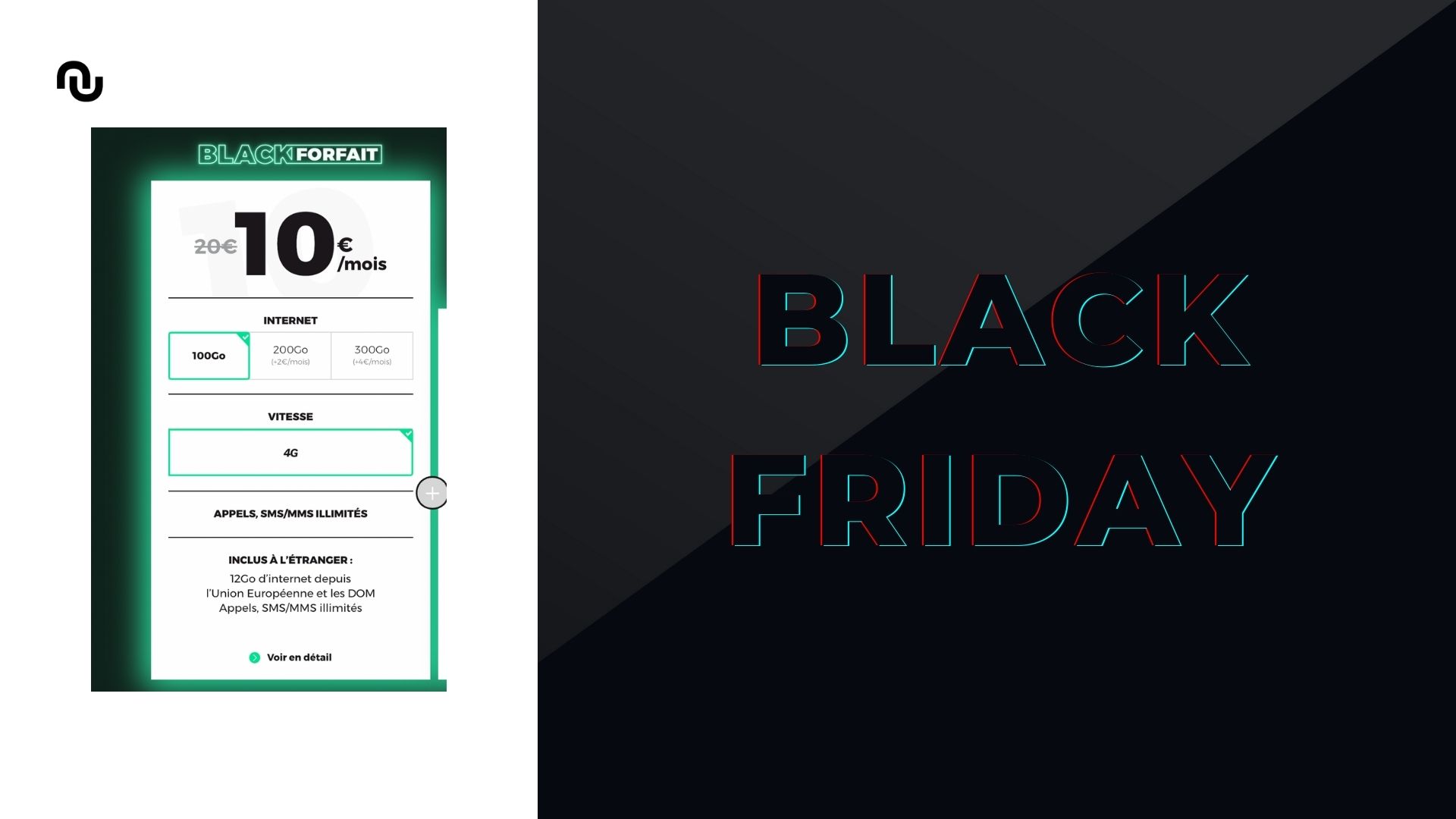 B&You dégaine ses offres Black Friday 2021 avec des forfaits 4G démarrant à 4,99 € pour 200 Mo de data. C’est peu : nous recommandons celui à 9,99 € qui permet d’avoir 100 Go de données 4G.