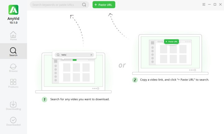 Vous pouvez soit rechercher directement une vidéo en saisissant un mot-clé dans la barre de recherche intégrée, soit entrer l’URL exacte de la vidéo que vous souhaitez télécharger.