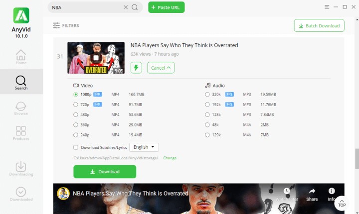 Avant de lancer le téléchargement, AnyVid Video Downloader propose un aperçu de la vidéo sélectionnée, une fonctionnalité particulièrement utile pour s’assurer que le contenu correspond bien à ce que vous recherchez. Une fois la vidéo validée, vous pouvez choisir parmi plusieurs formats vidéo et résolutions, allant des formats standard aux résolutions HD et 4K.